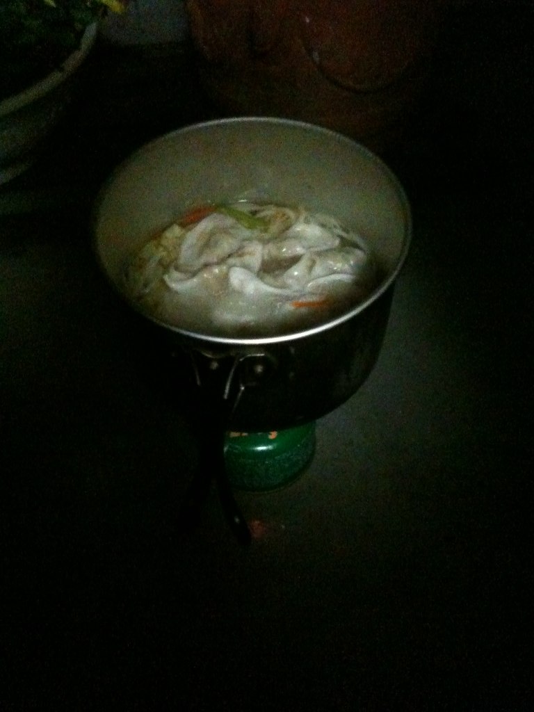 一応、巷間はGWである。明日からは天気も持ち直すみたいだし、お出掛けする皆さんには一つ、私の分まで楽しんで頂きたいところ。 さて、ルーティーンをかまして寝る予定であったが、さすがに、何か少しでもGW風なことをしてみようと思いたち、ベランダでワンバーナークッキング(笑)思いつきで、水餃子を作ることに。 レシピは全て適当。水、鶏ガラ、インスタントの餃子、キャベツ、もやし、人参を一煮立ちさせ、塩で味を整え、最後にごま油を少々。全てあり合わせ。 しかし、これがなかなか楽しかった。 こんな感じ。 風景は見飽きたいつものベランダだが、こんなことをしてみると、いつもの景色も、少しだけ特別になるね。 まぁ、こんなんもありあり。今は沈静しようと決めたので、僕はひっそりと、ポジティブな意味合いで己に埋没しようと思う。自分の内なる水脈を、掘って掘って掘るのだ。未来の誰かのために、そして、自分自身のために。 まぁ、それと水餃子には何の関連も無いけれど(笑)カラフルなお誘いをしてくれる友達には申し訳ないけれど、しばらく僕は潜んでみるつもりなんで、また浮上した暁には、酒でも飲みましょう。では。ハブ ア クール GW! a today's song Sooner or Later/Michelle Branch http://www.youtube.com/watch?v=eBMDqsGyIWM&feature=youtube_gdata_player PR