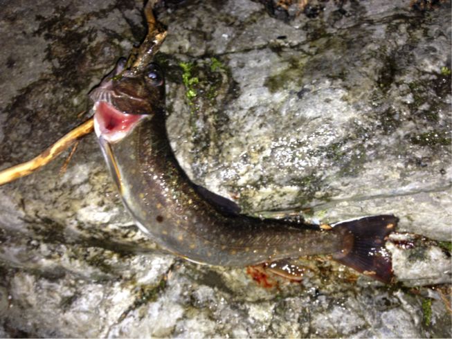 名栗の一番深い場所にある、お気に入りのキャンプ場へ。 ここ最近の週末は、結婚式のお呼ばれ続きで、なかなかタイミングが取れなかったことと、何より懐事情的に、大人しくせざるをえなかったので 笑、昨日は久しぶりに好きなアクティビティに浸れて幸せでした。 酒を大量に買い込み、いつもの「ザックリ鍋」を煮込む傍らで、肉を焼いて食らう。 良い時間が過ごせれました。 そして、人が寝静まった頃合いから、夜釣りスタート開始。0時くらいから笑 ウェーダーを履き、ヘッドライトを装備。「釣りとかよう分からんわ」みたいな人達からしたら、完全に不審者扱い不可避なことはさて置き、とにかく突入。 マムッシーが若干怖かったが、なんせお互い、程良くお酒を飲んでいたので、結構ザックリしたテンションで釣り下がる。(テン場が再上陸付近だったため) ビギナーの友達に「ココはまぁくるっしょ」的なポイントを譲り、自分は水深50cmくらいの渋い流れを丹念に探り釣っていたのだが、引っ張られて「アレッ」と思った刹那、「ゴツッ」とくるアタリが到来。 「これはヤマメのアタリじゃないし、ニジマスみたいに雑でもない。ん?ひょっとして…いやいや、まさかねぇ…(いやでもこの感じは…!!)」などと淡い期待を馳せながら引き抜いたら、やりました、イワナでした。 25cmくらいの綺麗なイワナで、この魚体を手にした瞬間、僕の中で満足のK点超えました笑 つまり、釣り終了です。 写真を何枚か撮った後、野ジメし、後はひたすら友達の釣り補助。 せっかく来たんだから釣れてほしいと「ややガチ」なレクチャーをしつつ笑、仕掛けも糸を0.4号にしたり0.8号にしたりとポイントに応じた工夫をこらしながら、2時間程付き添い時刻は深夜2時、泣きの一回で、ようやく友達もニジマスが!! 本当に良かったです。何だろう、確かに渓流釣りは、慣れるまでは少しだけ難しい部分はあるにせよ、「どうせ釣れない」→「だから、やっぱり俺は釣りはもうやらない」みたいにはなってほしくなかったので、いやはや、本当に良かった! んで、早速下準備をし、じっくり遠火で塩焼きにして、バランタインを傾けながら、互いに捕また獲物を肴に火を囲みました。 めっちゃDNAが刺激されて、本当に充実感でいっぱいでした。 んで、帰りはさわらびの湯で、いぶされた身体を浄化し、漸増的に都会色が濃くなっていくあの感じ、何故か毎回ウンザリしてしまう、「いつもの帰り道」をゆるりと下り、そしてまた何故か、「軽く蕎麦でも」からの爆盛りで有名な「古都」に突撃という全く意味不明な展開になり、結果は撃沈して、ヨタヨタしながら帰りました笑 いやぁ、何はともあれ、久しぶりに自然の中で自然に振る舞い、自然にある獲物を捕らえて仲間とシェア出来た喜び! これに勝るスパイスなどそうあるまい。楽しかった!